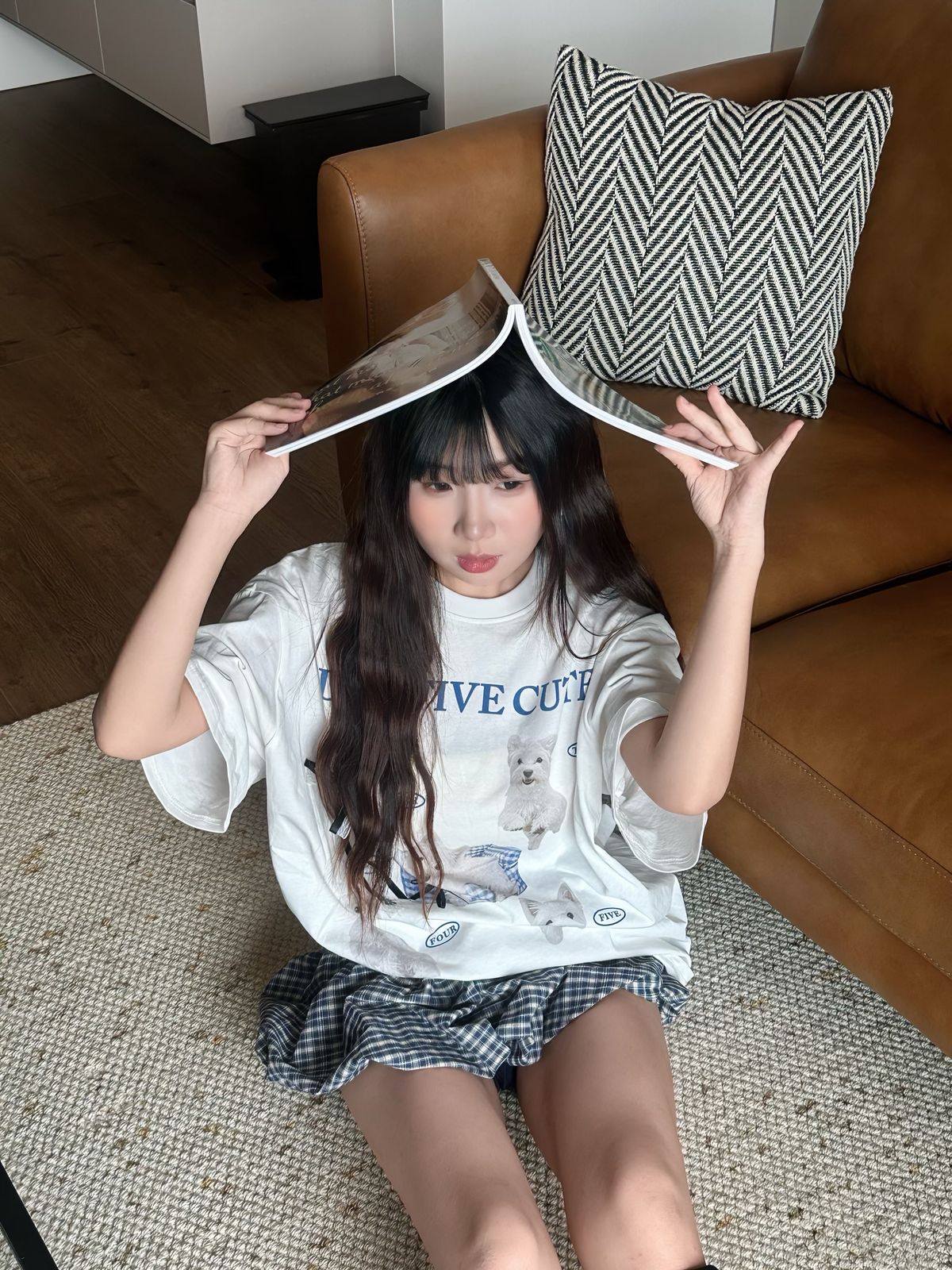 百搭格子鬆緊花苞裙